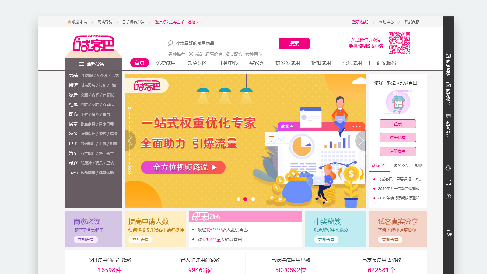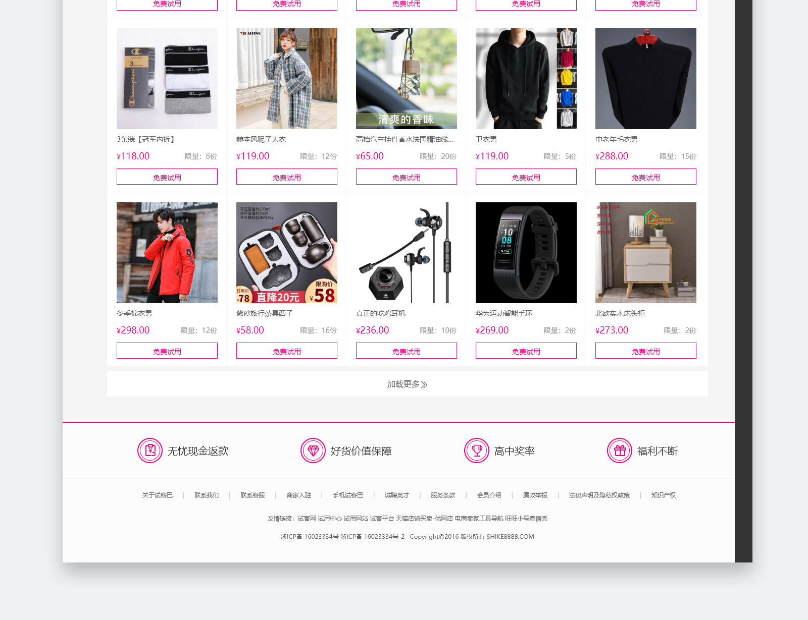 試客巴是靠譜的試用網(wǎng)站,專門為試客提供海量優(yōu)質(zhì)商品免費(fèi)試用的平臺(tái)。所有試用品免費(fèi)申請(qǐng)?jiān)囉?試用通過率高,試客不用花錢,試用商品后無需退還,僅需對(duì)商品進(jìn)行客觀評(píng)價(jià)。滿足各階段消費(fèi)者和商家的需求,致力于試用體驗(yàn)和口碑營銷,持續(xù)為用戶創(chuàng)造價(jià)值。