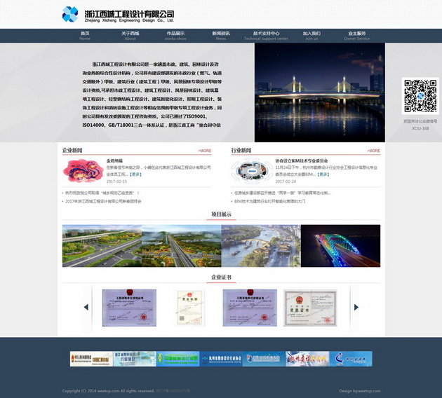 浙江西城工程設(shè)計有限公司始建于2000年,是一家涵蓋市政、建筑、園林設(shè)計及咨詢業(yè)務的綜合設(shè)計院,并已通過ISO9001、ISO14000、GB/T18001三合一體系認證。