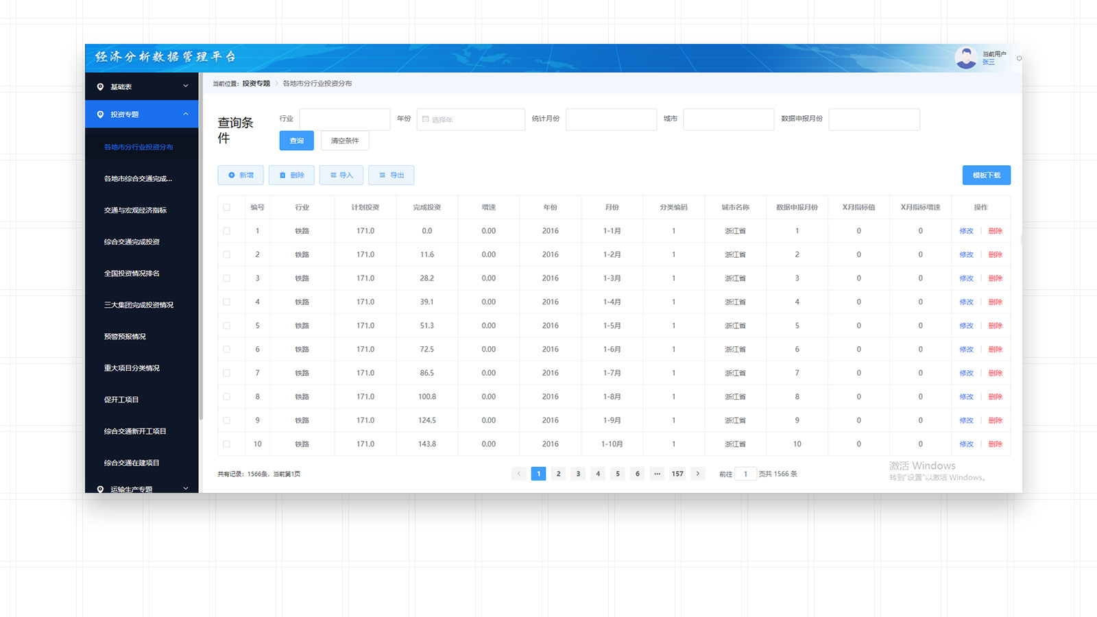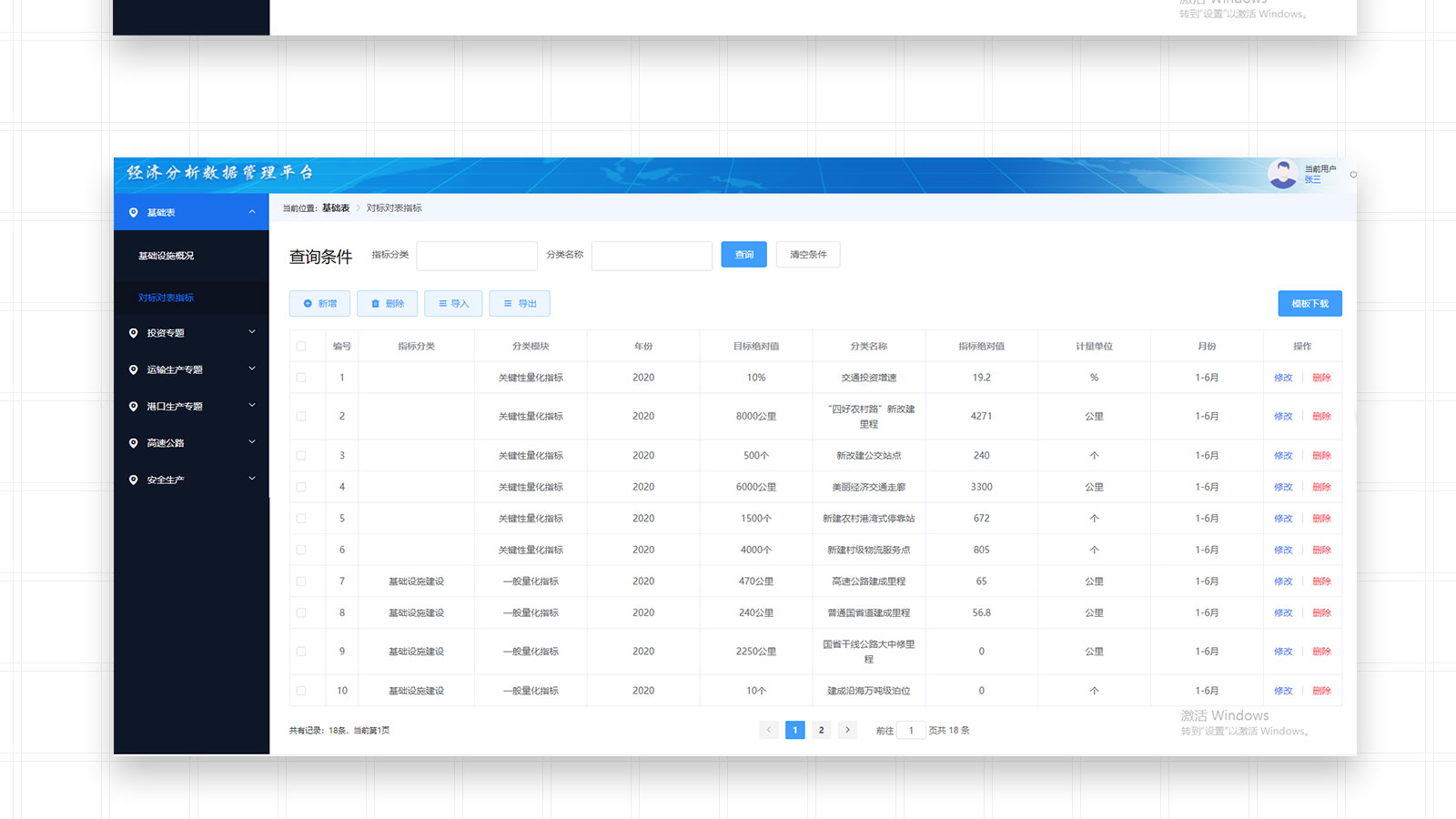 Transportation Department economic analysis data management platform -PC end