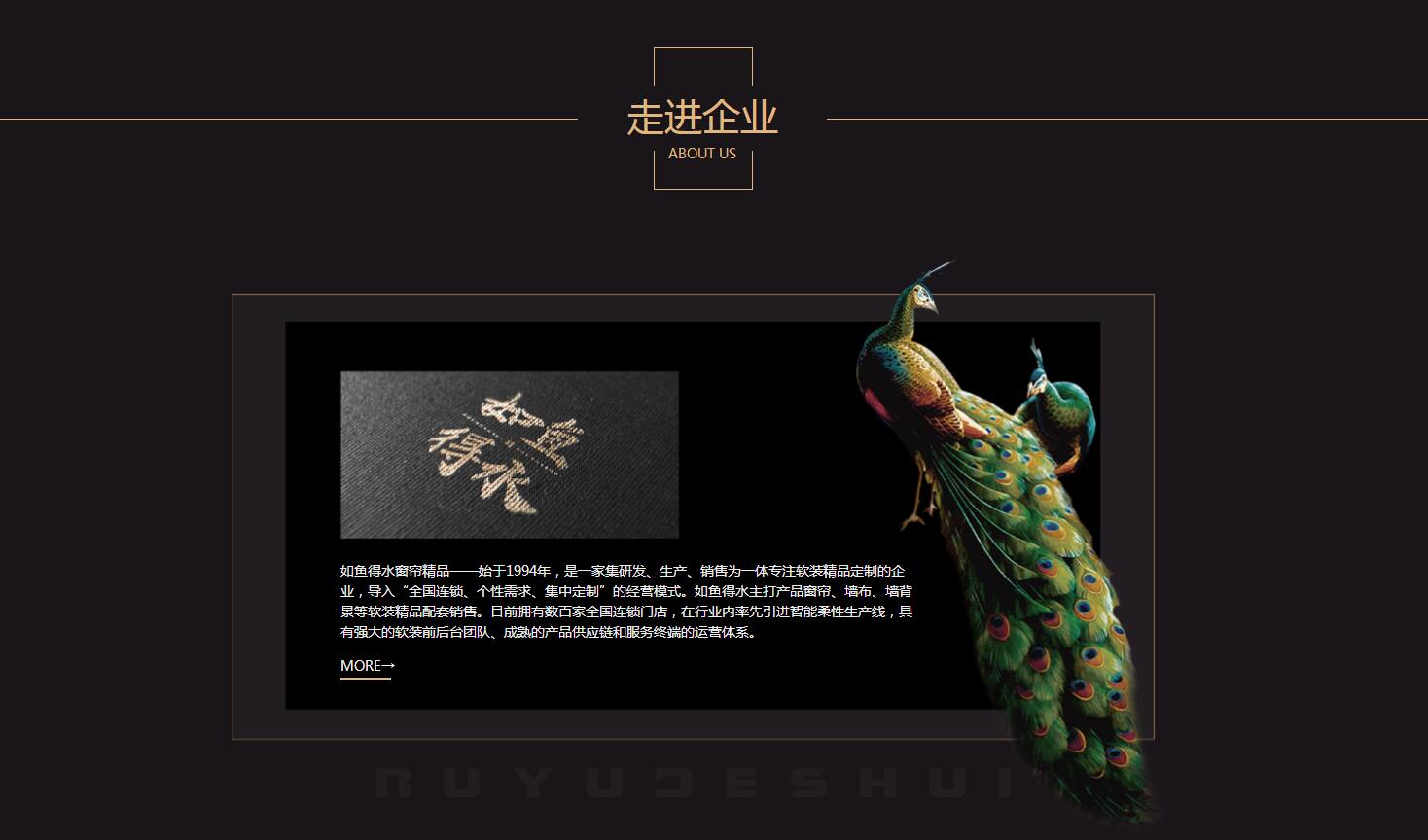 “西裝工藝、環(huán)保品質(zhì)、真正好窗簾”已成為如魚得水窗簾的代名詞。 如魚得水擁有數(shù)百家全國連鎖門店,已由窗簾行業(yè)翹楚品牌,升級為精品軟裝營銷模式,主打產(chǎn)品窗簾、墻布、墻背景等軟裝精品配套銷售。具有強大的軟裝前后臺團隊、成熟的產(chǎn)品供應(yīng)鏈和服務(wù)終端的運營體系。