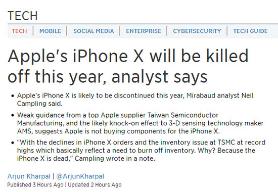 分析師:蘋果IPHONE X已死,今年極有可能停產(chǎn)