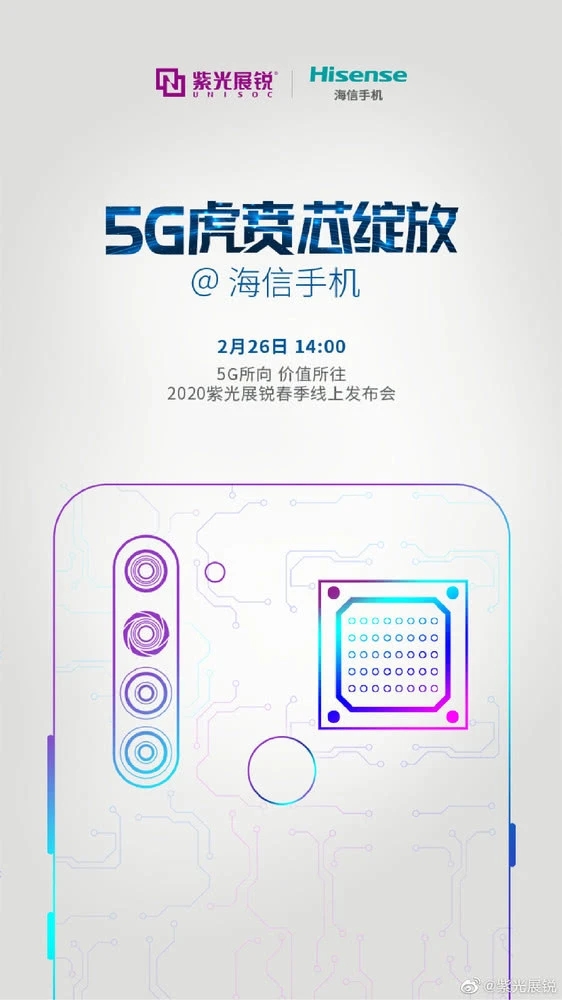 紫光聯(lián)合海信下午舉辦發(fā)布會 將推出5G芯片和F50手機