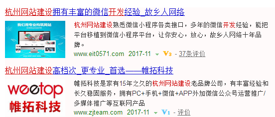 下面杭州網(wǎng)站建設(shè)--帷拓小編就來(lái)說(shuō)說(shuō)怎么區(qū)分關(guān)鍵詞排名是競(jìng)價(jià)還是優(yōu)化。前面我們說(shuō)到優(yōu)化,網(wǎng)站建設(shè)好后就要開始做優(yōu)化的工作,把自己想要推廣的關(guān)鍵詞做到首頁(yè)。那么,怎么看呢?下面我們就百度優(yōu)化頁(yè)面來(lái)說(shuō)明一下,頁(yè)面主體有兩部分最重要:一是廣告,二是自然搜索的結(jié)果。如圖所示,標(biāo)有推廣連接的都是廣告。左側(cè)最上面有3個(gè)廣告位,最下面(相關(guān)搜索之前)有三個(gè)廣告位,右側(cè)上部分是來(lái)自知心搜索的相關(guān)詞匯等,下面是4個(gè)廣告。大部分的人都最大右側(cè)顯示的都是廣告位,所以右側(cè)廣告位沒有加特殊底色。頁(yè)面左側(cè)廣告位都加淺底色,可以和自然搜索結(jié)果較清楚的分開。